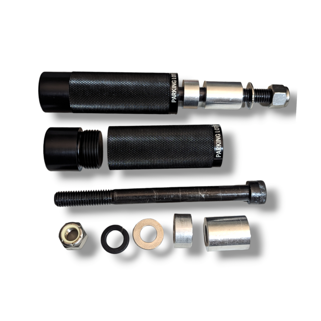 - Each set includes 2 slider bodies, 2 delrin slider caps, grade 8 hardware, 2 threaded bungs, 2 BLACK ANODIZED spacers